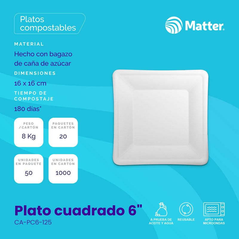Plato cuadrado 6" cantidad